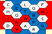 In the picture here, the blue team have won, because they have connected the blue at the top with the blue at the bottom.